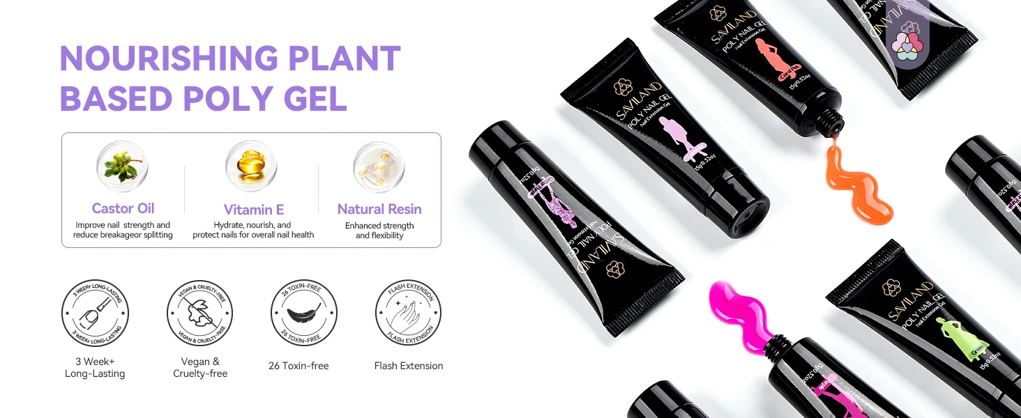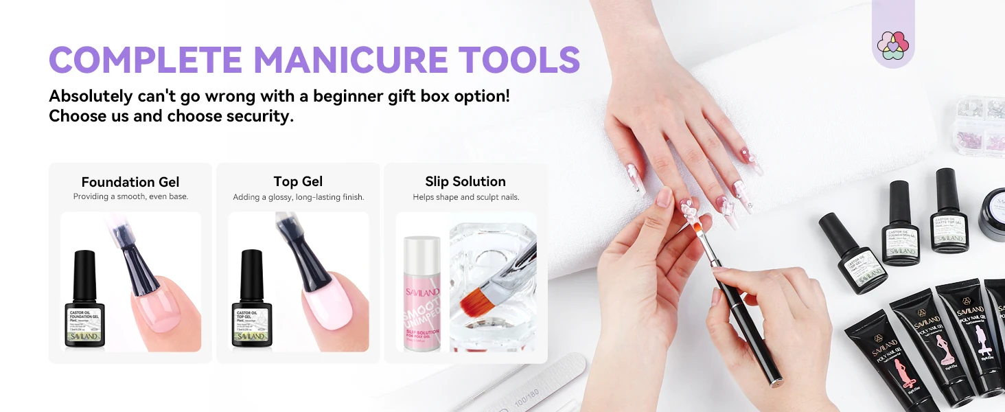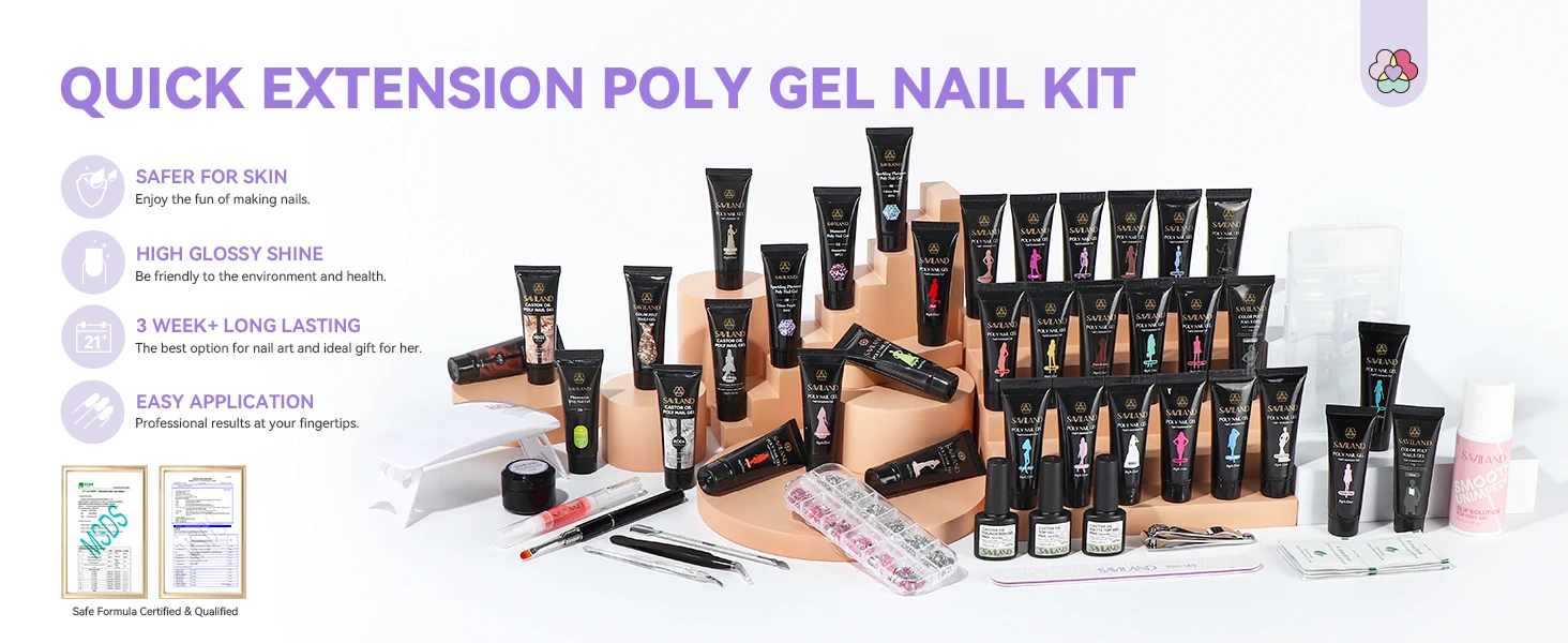 SAVILAND Poly Gel Nail Kit for Pretty Gift: 36 Colors Poly Gel Nail Starter Kit with Slip Solution and Mini U V Lamp Curing Light for Quick Extension Home DIY, Manicure Set Supplies Tools for Starter